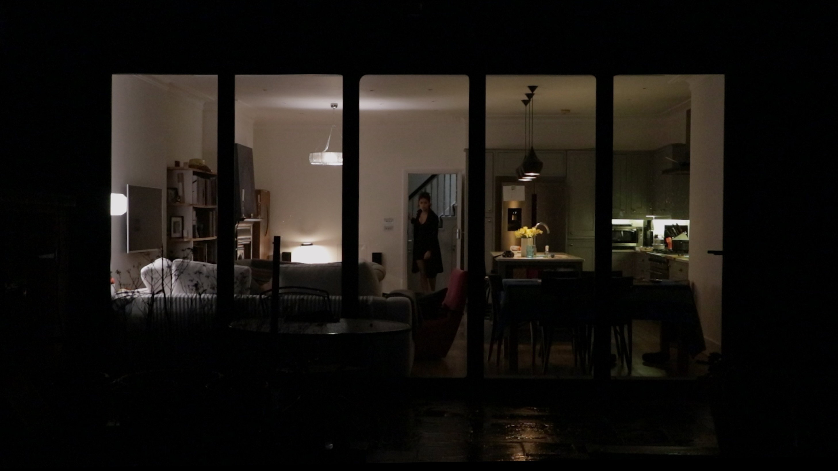 A poised woman, a quiet suburban home, and a night filled with spinning records and subtle unease.