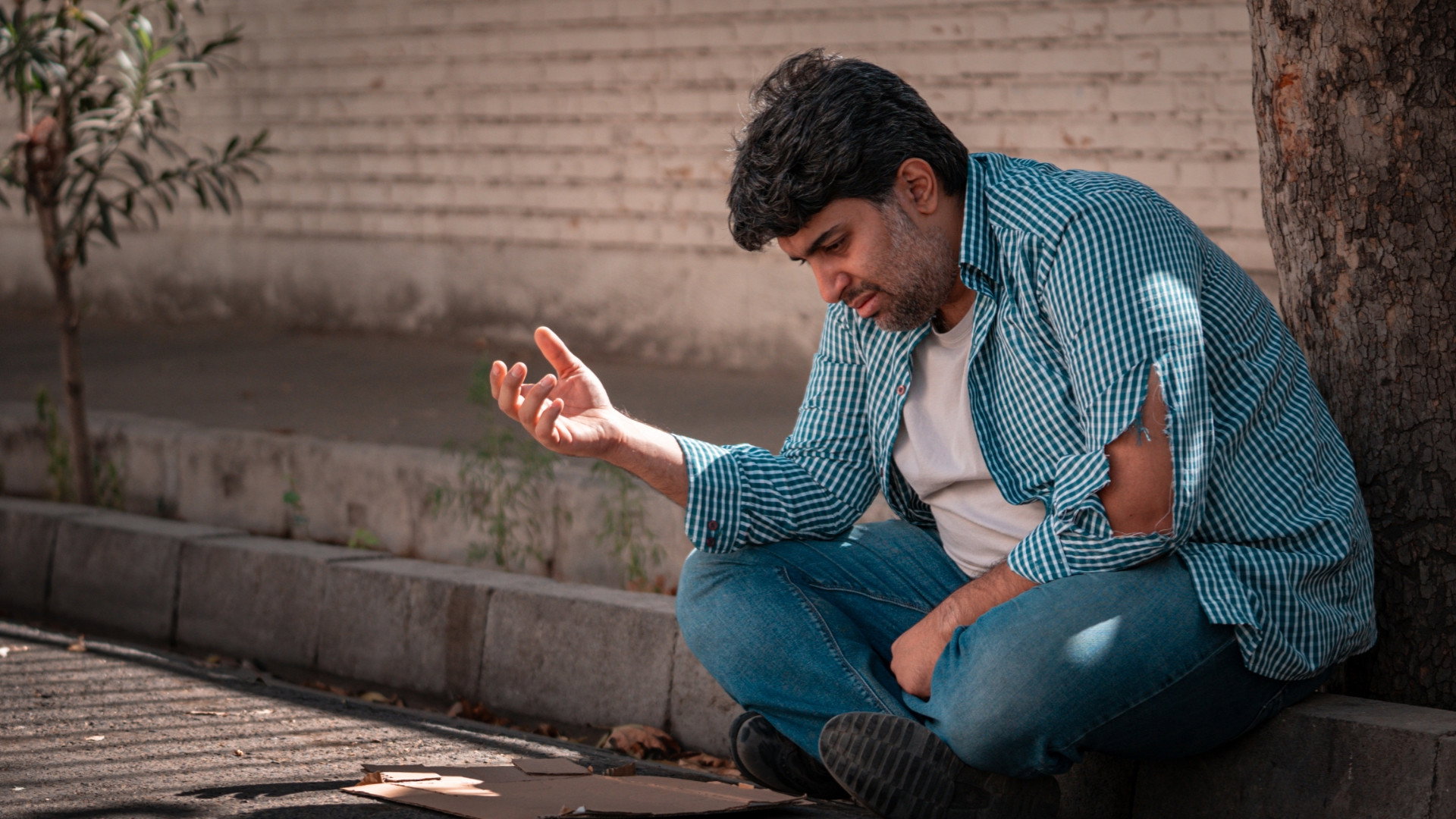 A man falls into begging unintentionally and enjoys it.